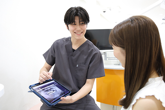歯の治療と聞くと、「痛そうで不安…」と感じるかたもいらっしゃるかもしれません。当院では、そんなかたにも安心していただけるよう、できるだけ痛みに配慮した治療を心がけています。麻酔の方法や治療の進め方にも工夫を凝らし、一人ひとりに合った負担の少ない治療をご提供いたします。歯科治療が苦手なかたも、安心してご相談ください。
