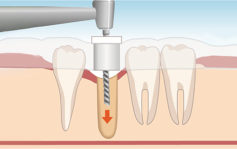 ソケットリフトと同様、上顎の骨が足りない場合に行います。歯ぐきと顎の骨に小さな穴を開け、そこに骨を移植して補充することでインプラントを支えるための骨を確保します。