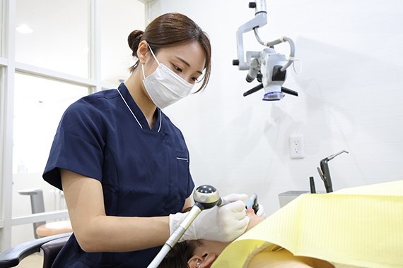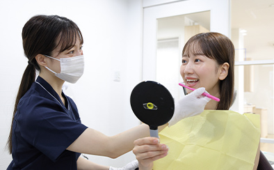 専門の歯科衛生士チームが、皆様のお口の健康を守るお手伝いをいたします。歯科衛生士の担当制を採用しており、いつも同じ歯科衛生士があなたの口内ケアを担当するため、早期発見・早期治療につながります。